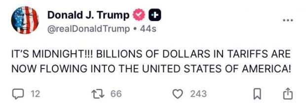 Trump is so excited, he can’t sleep. He’s boasting about the billions in tariff revenues at midnight.